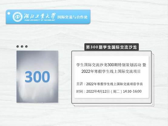 主题:“学生国际交流沙龙300期特别策划活动”暨“2022年寒假学生线上国际交流项目分享会”