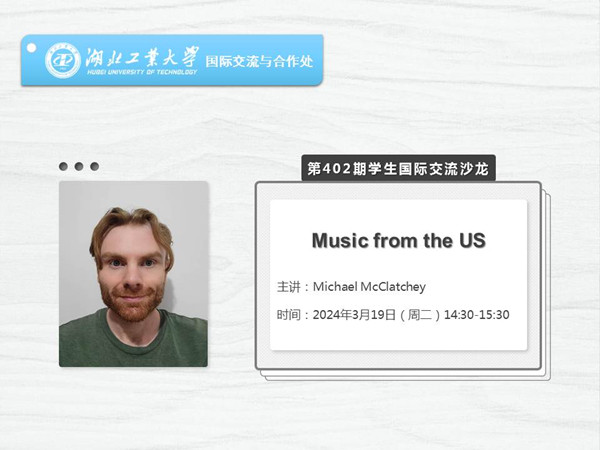 请加入“湖工大学生出国交流群”QQ125865363,关注微信公众号“湖工大国际”,关注相关通知。全校学生均可灵活报名参加,本沙龙不收取任何费用。